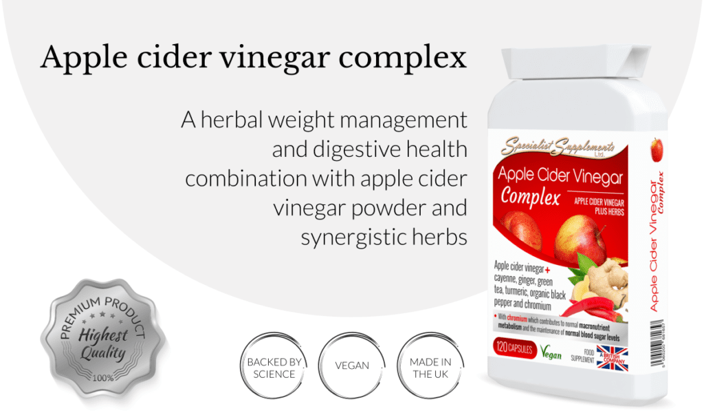 Apple cider vinegar complex contains apple cider vinegar along with other complementary ingredients intended to enhance the effects. These commonly include: